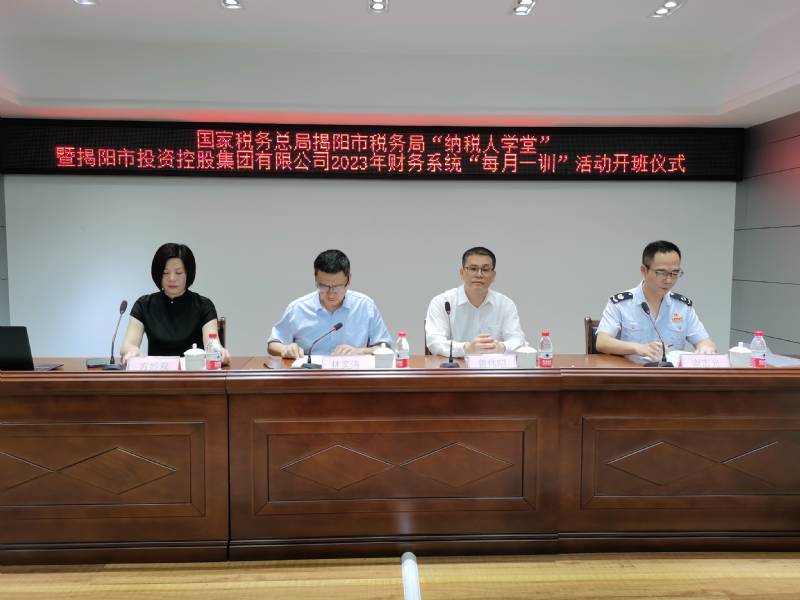 揭陽(yáng)市稅務(wù)局副局長(cháng)曾偉昭、市投控集團董事長(cháng)林奕濤出席開(kāi)班儀式。
